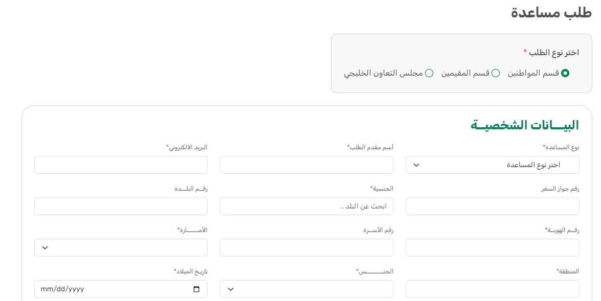عند الدخول على الموقع سوف تجدون استمارة لتقديم طلب المساعدة، وهي تقدم مجموعة من الاختيارات على حسب الفئة التي تنتمون إليها. كما يطلب منكم الإدلاء بمجموعة من الوثائق والمستندات التي تتضمن معلوماتكم الشخصية ووضيعتكم الاجتماعية والاقتصادية.