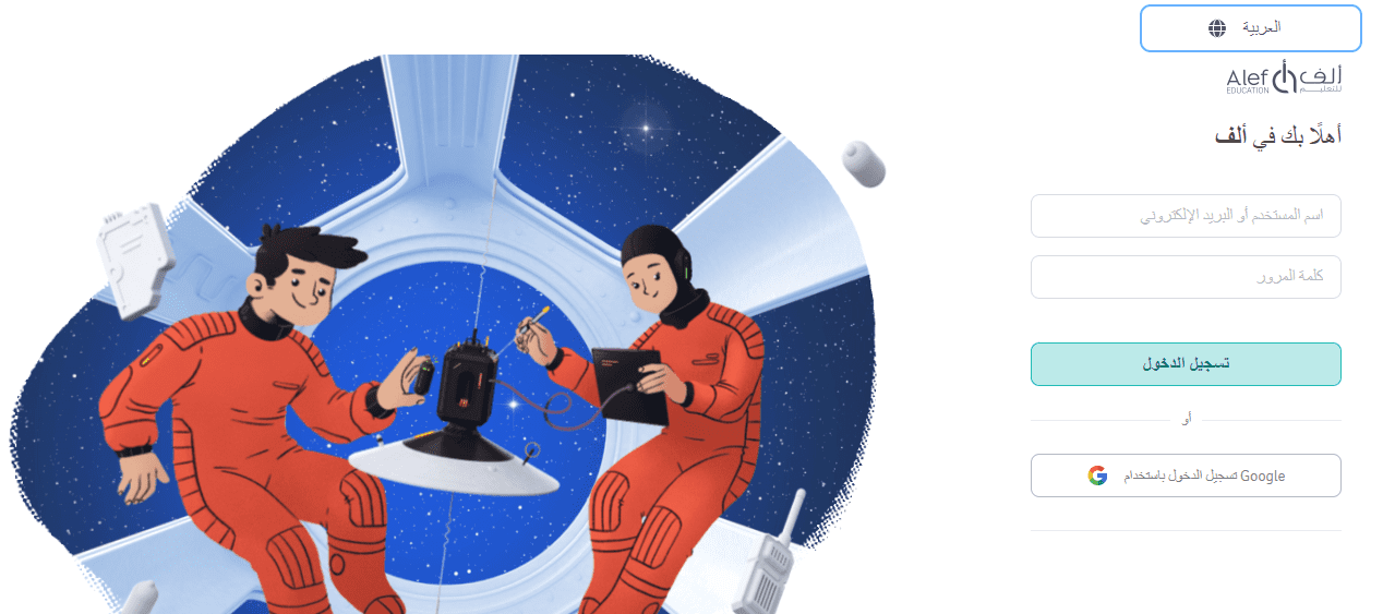 - الدخول إلى رابط التسجيل: sso.alefed.com/login.